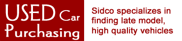 follows: "Find me a 2 to 3 year old Camry or Accord, with 4 doors, any color but green, trim package of 'X', and I have a budget of 'Y'". Our experienced buyers will search auction inventories and dealer inventories until we find the right one that meets your requirements. The auctions and inventories available to SIDCO allow us to purchase virtually any kind of vehicle. You let us know what you want and we find it. Once your vehicle is located and purchased, we ship it wherever you want. |
